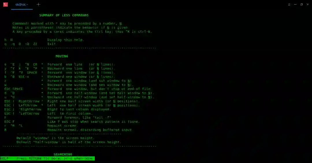 它支持手册页的所有操作,所以你可以像使用手册页一样使用它。按 h 查看帮助选项。