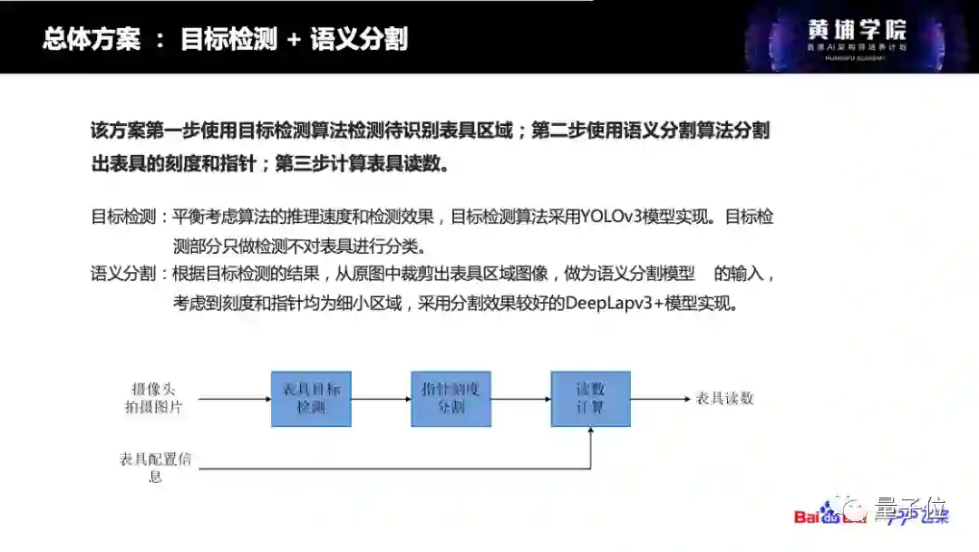 所以我们没选择直接识别的方案,因为直接识别会遇到多尺度的问题。我们选用了更为复杂的方案:目标检测+语义分割,当我的读数难度变小了,精确度会得到更好的保证,这是最核心的。同时,因为模型复杂度的提升,我的推理时间变长了。不过没关系,因为在表计巡检的场景里,对时效要求并不高。所以很多时候,大家问这样的方案好不好那样的方案好不好,还是要首先去回答自己的问题,你的场景到底有什么样的限制条件。没有最好,只有最适合。