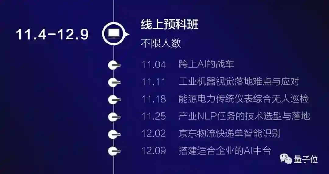 11月4日,百度黄埔学院第四期开启为期6周的线上预科班。就是通过AI思维、AI方法、AI技术、AI选择等环环相扣的课程,让大家“得法前行”,找到新技术推动产业升级的全流程方法论。