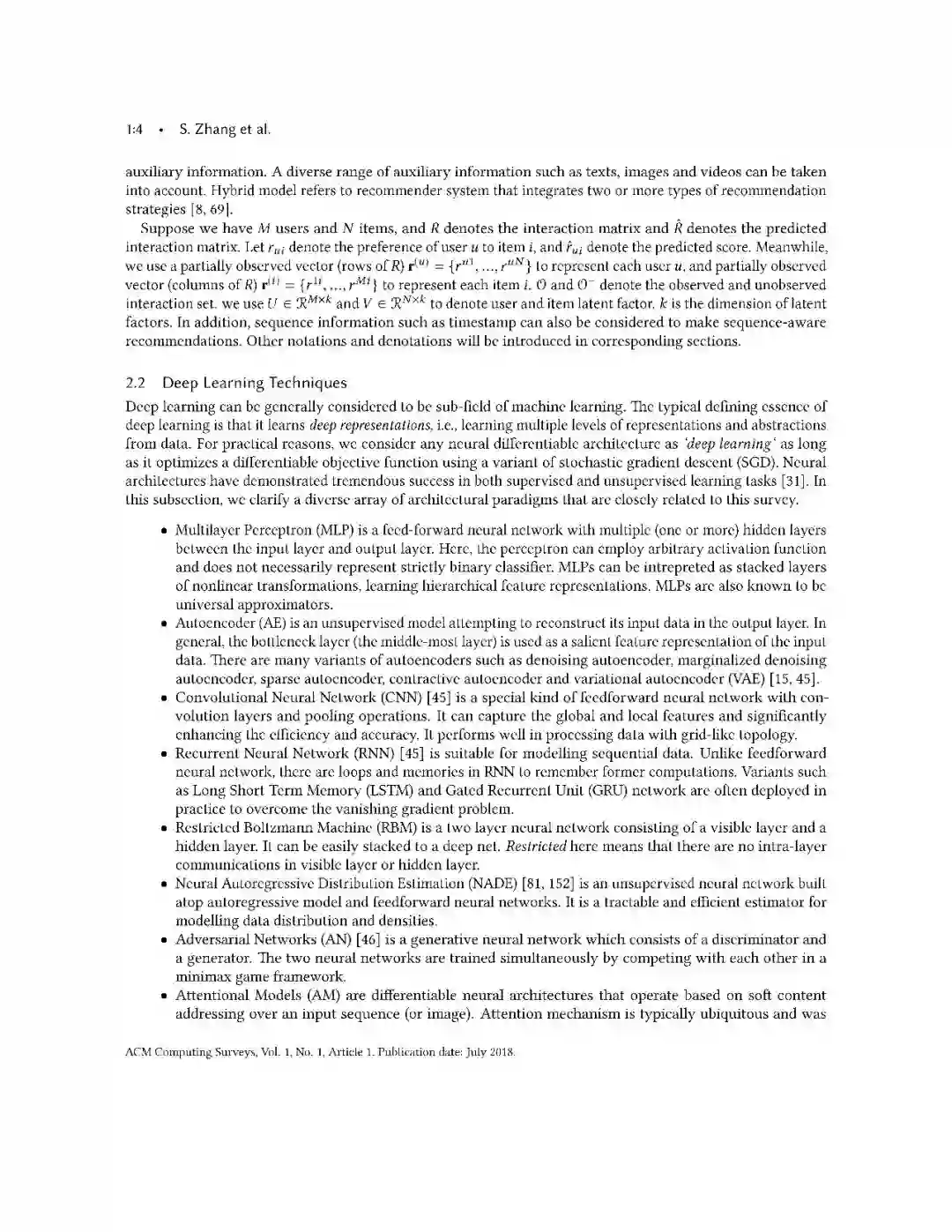 推荐系统模型主要分为三个大类:基于协同过滤、基于内容和混合模型。推荐系统要完成的任务也可以分为三类:评分(rarting)、排名(ranking)、分类(classification)。深度学习相关技术用于推荐系统的包括: