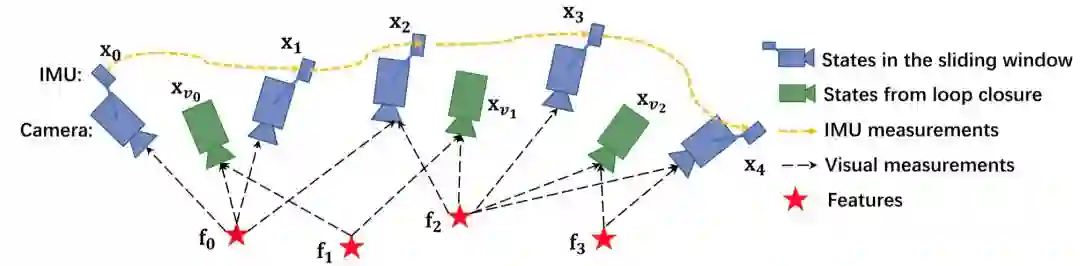 初始化估计器后,由基于滑动窗口的紧耦合单目VIO来实现准确并鲁棒的状态估计。