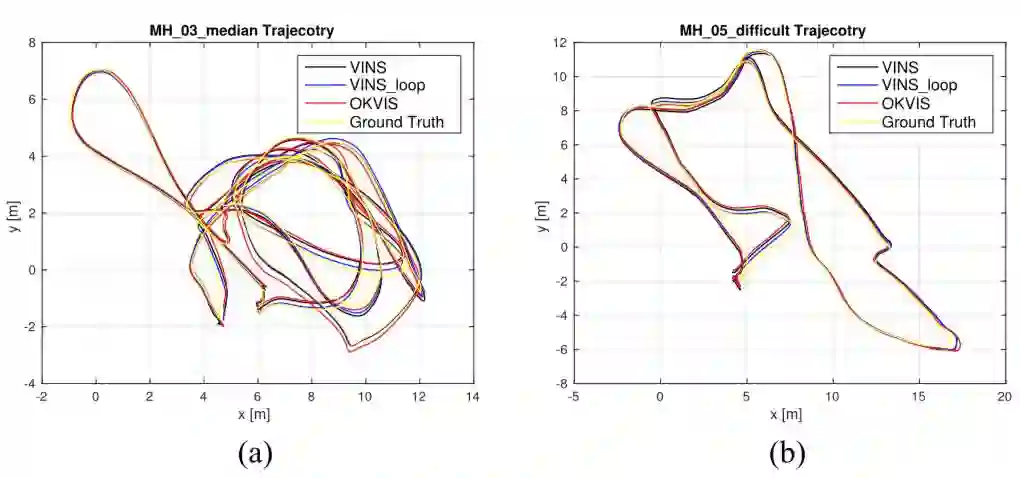 图3 VINS与OKVIS在数据集上的轨迹对比。