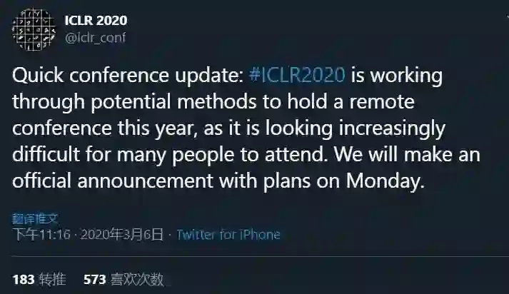 人工智能顶级会议 ICLR 2020 很可能也要因为新冠疫情取消了。