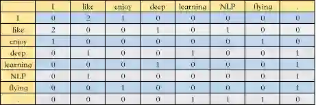 选取窗口大小为3,那么构成的共现矩阵 如下图所示