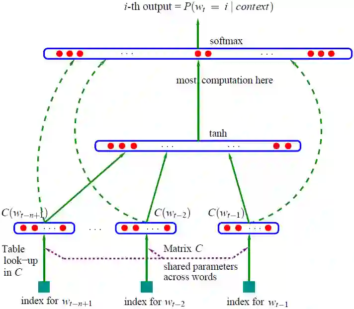 其中 是单词 的上下文, 是词典。所以我们关注的重点应该就是 的构造上,NNLM和Word2vec的本质区别也是在于该条件概率函数的构造方式不同。