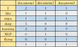 document1: I like deep learning. I enjoy deep learningdocument2: I like NLP.document3: I enjoy flying.