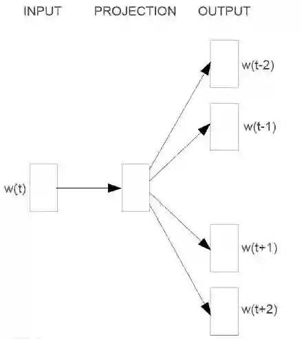 Skip-gram的核心思想就是利用给定的当前词 ,预测上下文 ,其结构表示为