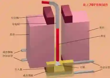 (2)电渣焊总是以立焊方式进行,不能平焊,电渣焊不适于厚度在30mm以下的工件,焊缝也不宜过长。