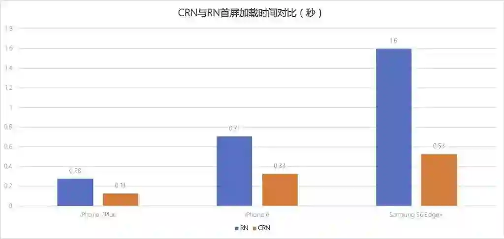 可见CRN优化后的页面首屏加载时间与优化前RN官方的方式相比在iOS上减少了50%左右,Android上减少了60%左右,优化效果明显。