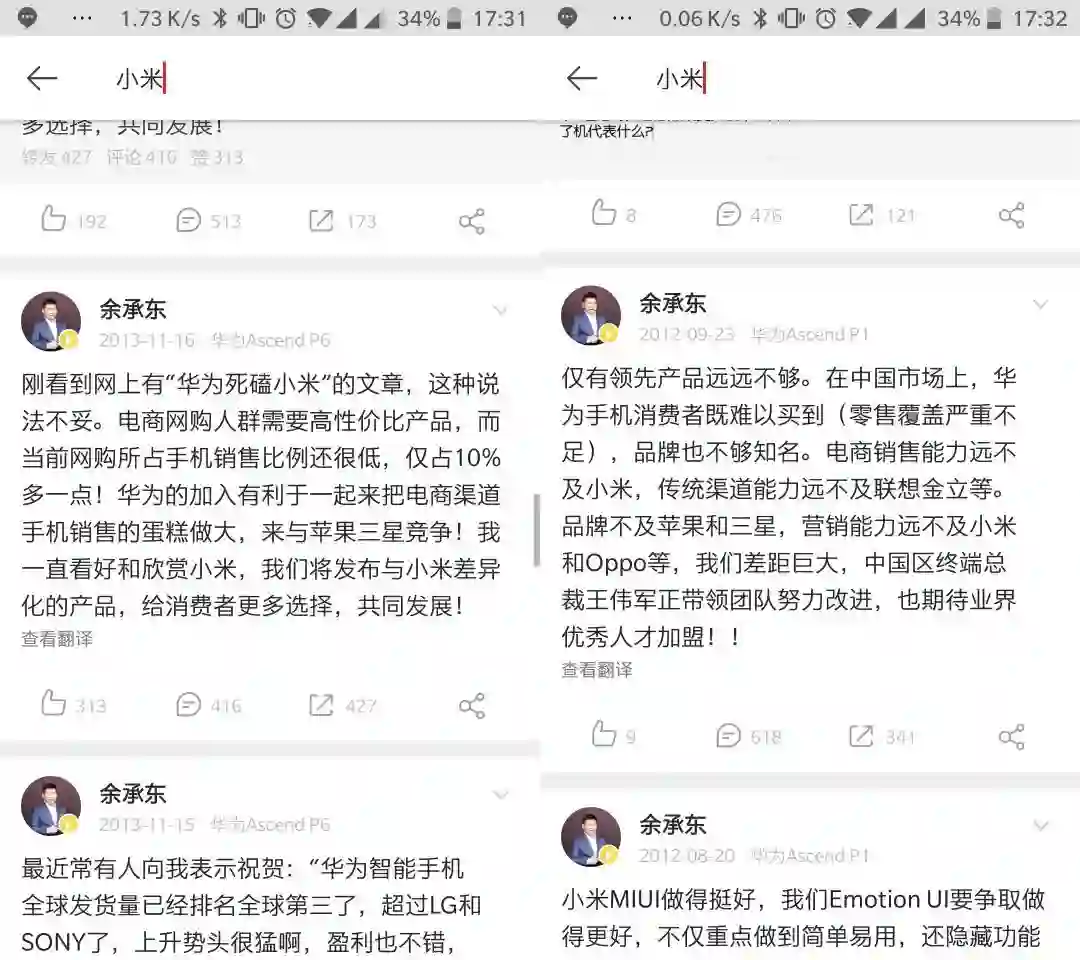 对于余承东而言,抛弃手机运营商定制模式后,华为需要新出路。而当时凭借社区模式,做到口碑爆炸的小米,就成了华为的学习对象之一。