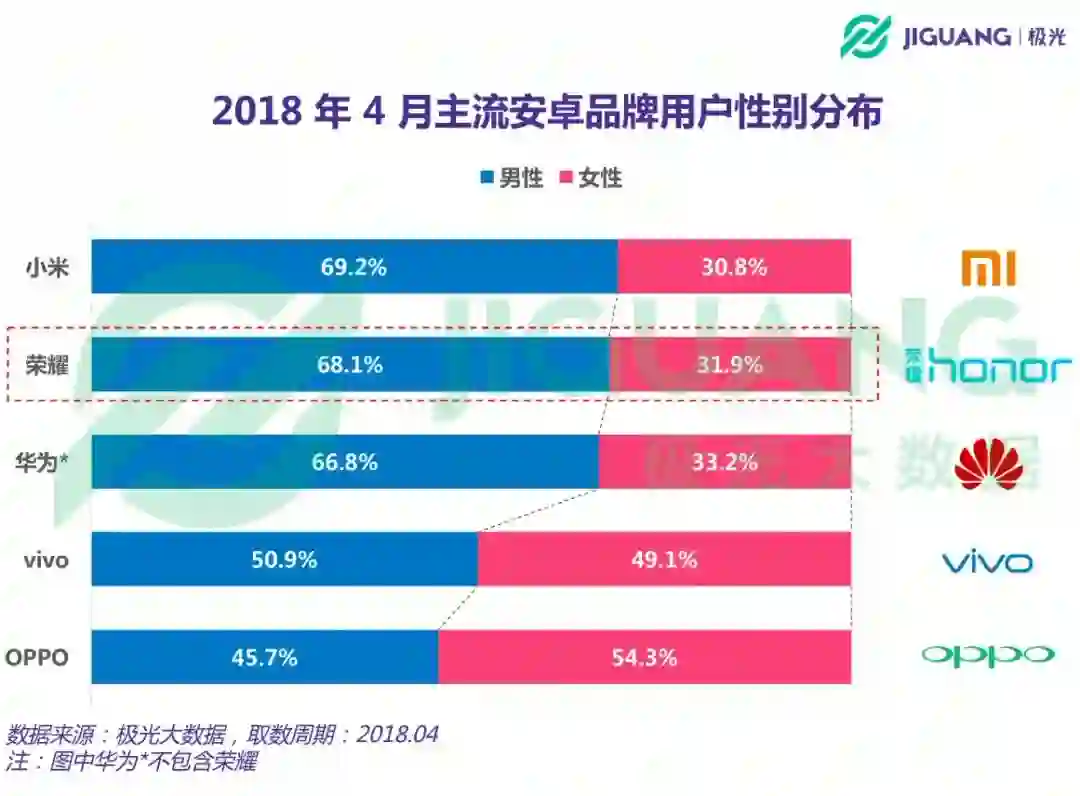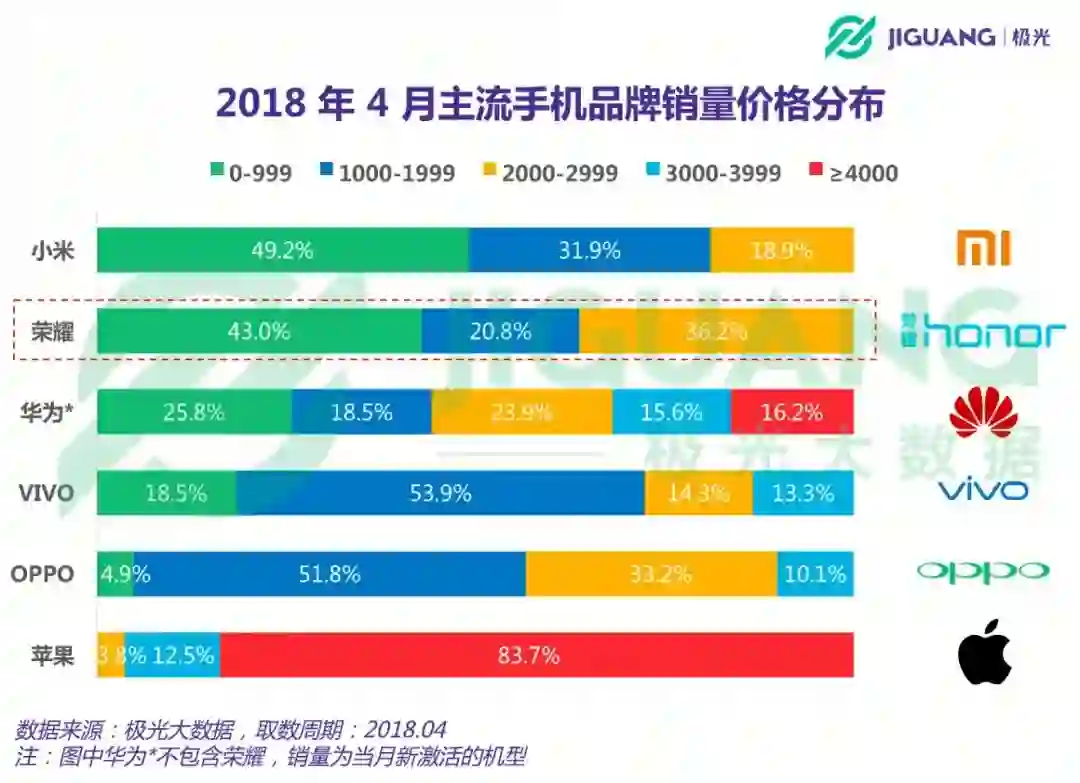 与此有关的佐证是:2018年极光大数据发布发手机频频销量价格分布中,小米和荣耀的主要市场均在千元机的男性用户身上。