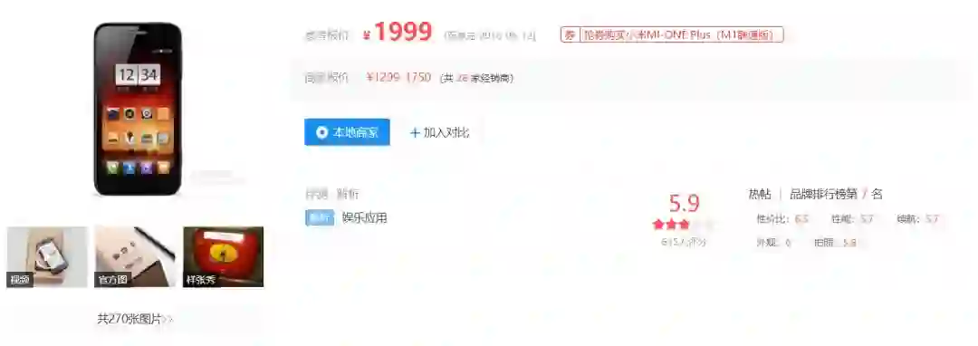 2011年11月,华为在国内上架了在价格和硬件参数上与小米1对标的Honor U8860,据当时的电子发烧友介绍:“Honor U8860在硬件配置和UI交互上不及小米,但小米1的全球出货量只有30万台,所以买不到小米1的用户,不少人买了Honor U8860。”