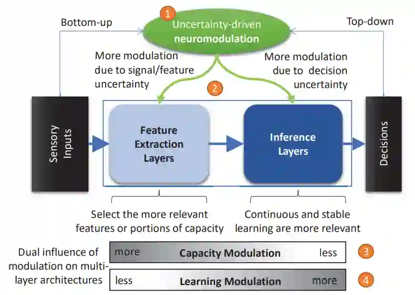 | 不确定性调控学习:我们认为,神经调控可以上调对解决两个或多个类别之间的区别至关重要的神经元的学习。 | 证明新任务的学习表示不会覆盖以前学习的任务。 |