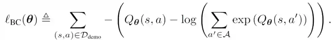 δ^2 表示平方软贝尔曼误差(soft Bellman error),Q_θ表示 Soft Q 函数。r 为不依赖于状态或动作的常数。作者在文章中证明了 SQIL 相当于行为克隆的一种变体,它使用正则化来克服状态分布的转变。