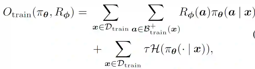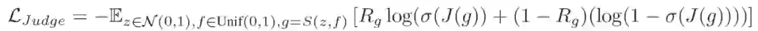 判断器被训练成一个二元分类器来预测奖励。本文使用交叉熵损失函数来训练判断器,输入分布则由设定器定义,标签是通过在这些目标上测试解算器获得的: