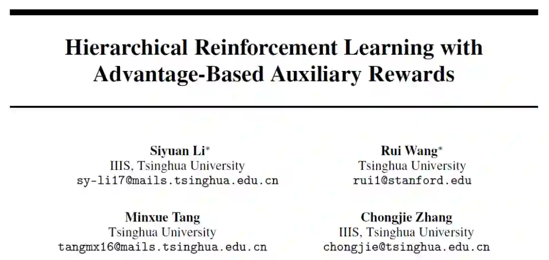 论文地址:https://papers.nips.cc/paper/8421-hierarchical-reinforcement-learning-with-advantage-based-auxiliary-rewards.pdf