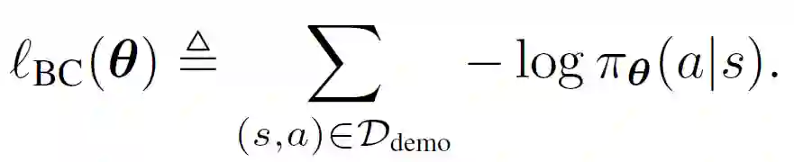 用标准行为克隆训练模仿策略,相当于拟合一个参数模型,使负对数似然损失最小化: