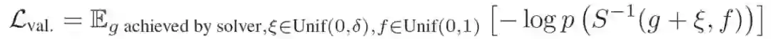 其中,g 是解算器实现的目标中的样本,不管它在该周期中的任务是什么。ξ 是少量的噪声,以避免过度拟合。p() 表示在固定的高斯先验知识下对 S 的潜在状态进行抽样的概率。