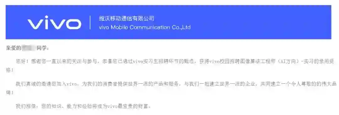 此外,还要感谢vivo AI研究院和虹软nice的同事们、和我一起实习的其他实习生伙伴,以及秋招路上曾帮助过我的人。