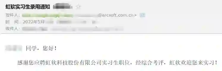 8月底顺利通过转正答辩,9月初拿到了虹软为数不多的转正意向书。