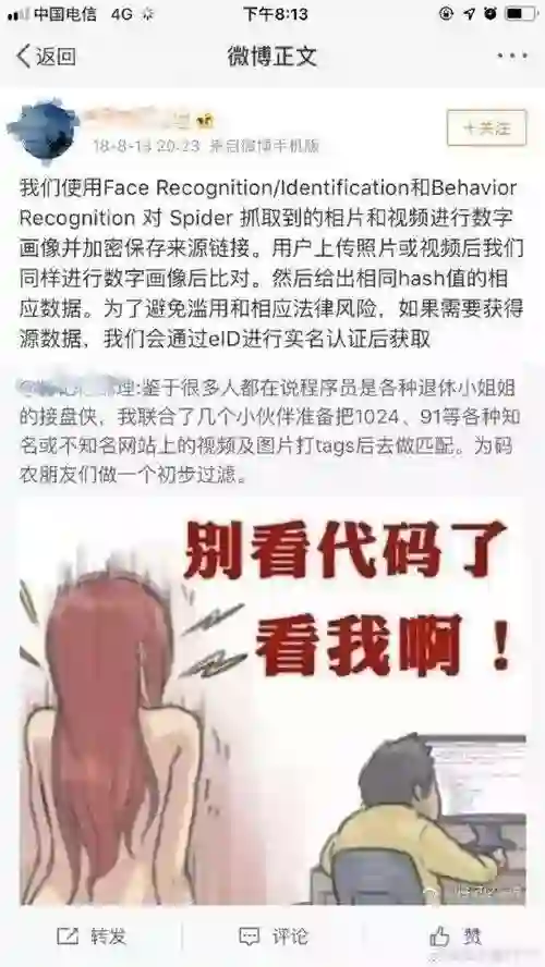 他们首先从91、P站等专业色情网站采集了100TB以上性爱视频,然后用人脸识别、声音识别、步态分析等技术识别女主身份,号称准确率超过99%。目前他们声称已识别出了10万以上的小姐姐。