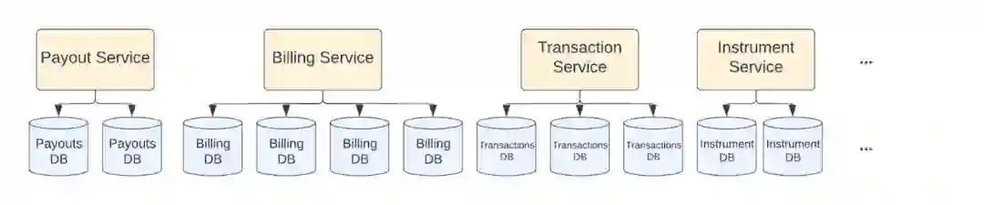 在迁移到 SOA 架构之后,每个支付子领域都有自己的服务和数据表,但更多的特性意味着更复杂和规范化的数据。