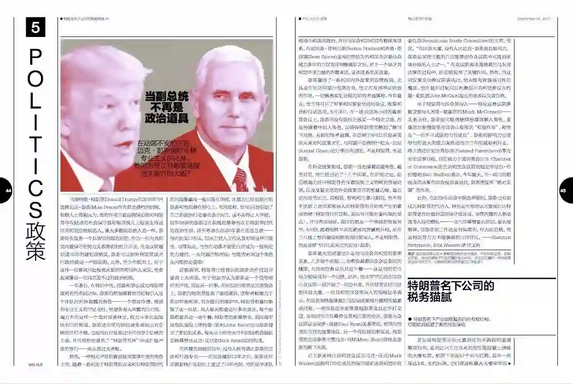 美国副总统以往大多都是总统的政治道具,而如今的迈克·彭斯却不是。他成功避免了白宫西翼的政治中伤,并且正在履行一些特朗普无法胜任的工作。但他能否帮助总统重回正常轨道?