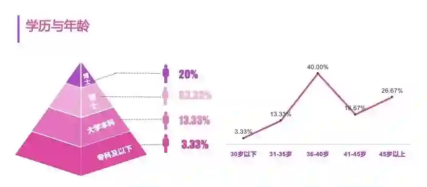 1. 她们平均年龄41.9岁,硕博占比高达83.33%,近一半拥有海外留学背景;
