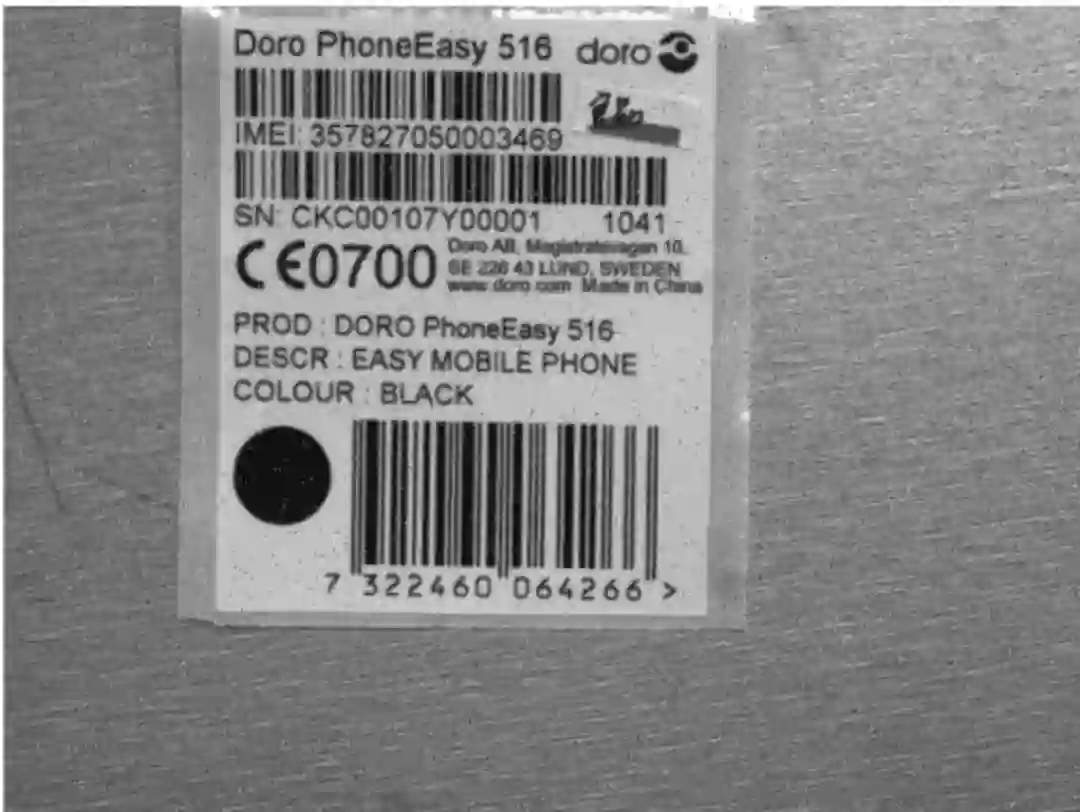 由于同一款手机产品,其条码的贴纸上的条码字符等信息的位置都是固定的,因此把图像中纸面部分分割出来后, 按固定位置的物理分割能很容易把条码部分分割出来。