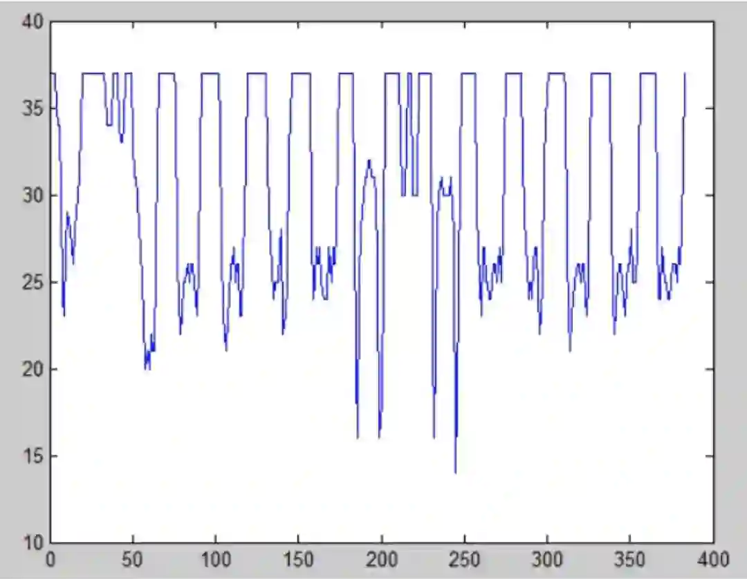 接着,对图片进行水平方向的投影,这样有字符的地方的投影值就高,没字的地方投影得到的值就低。