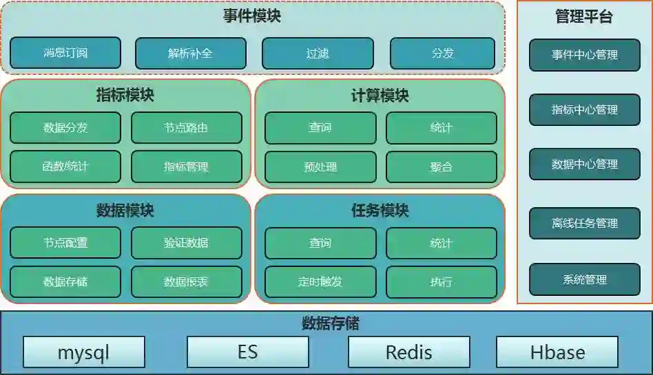 数据中心涵盖了整个关务生态的数据,通过实时+离线两种方式,很好的支撑了实时业务监控和指标监控等核心业务。如下是整个数据中心核心架构,包含消息接入,指标计算,数据存储等核心模块。