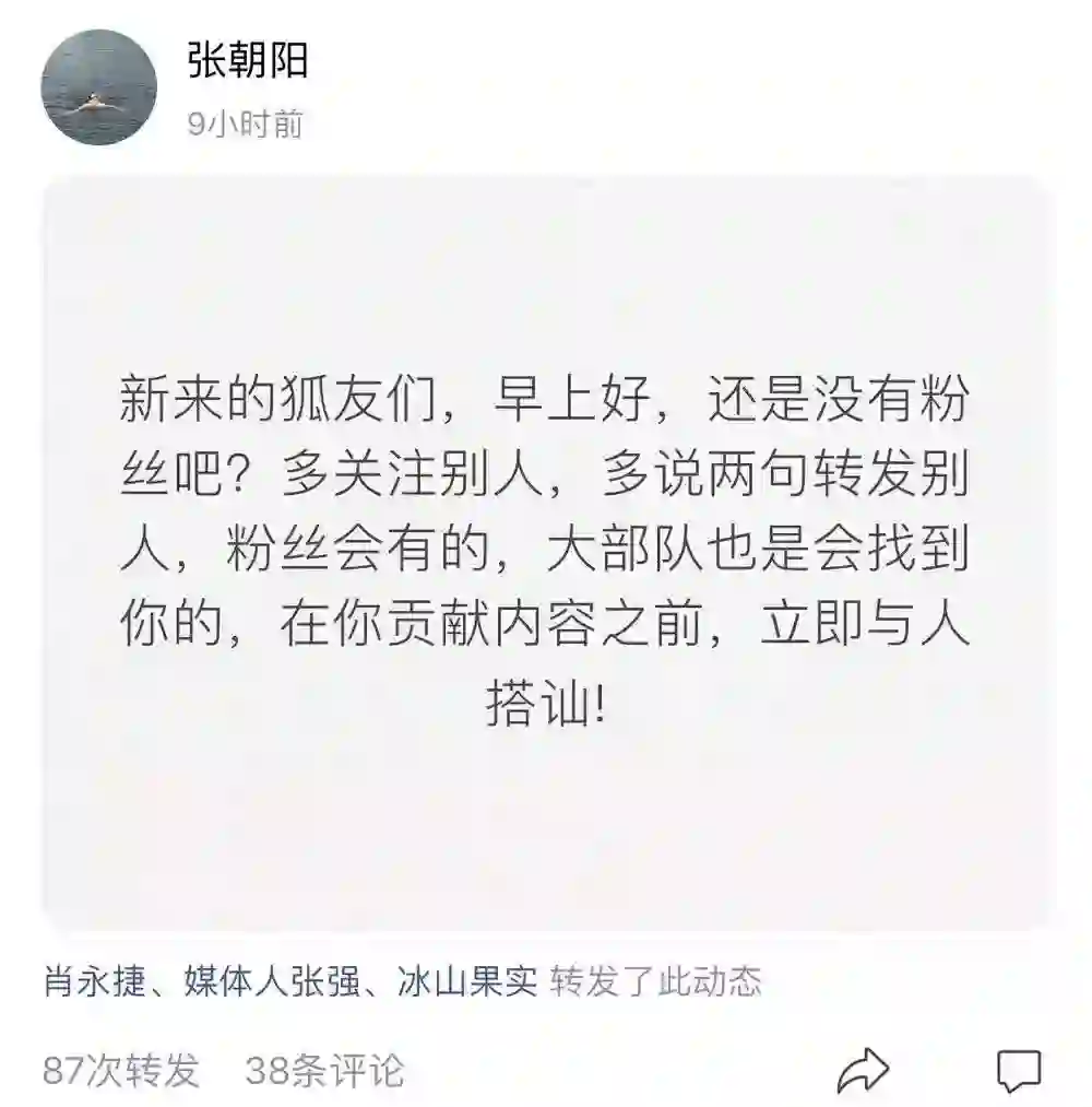 对于观望中的微博用户而言,狐友没有提供足够的诱惑让他们将关系迁移过去。更不用提他们在微博上关注的头部账号们,何必放弃一个已经有成熟运营经验的产品,去到一个全新未知的平台重新构筑自己的粉丝群体?