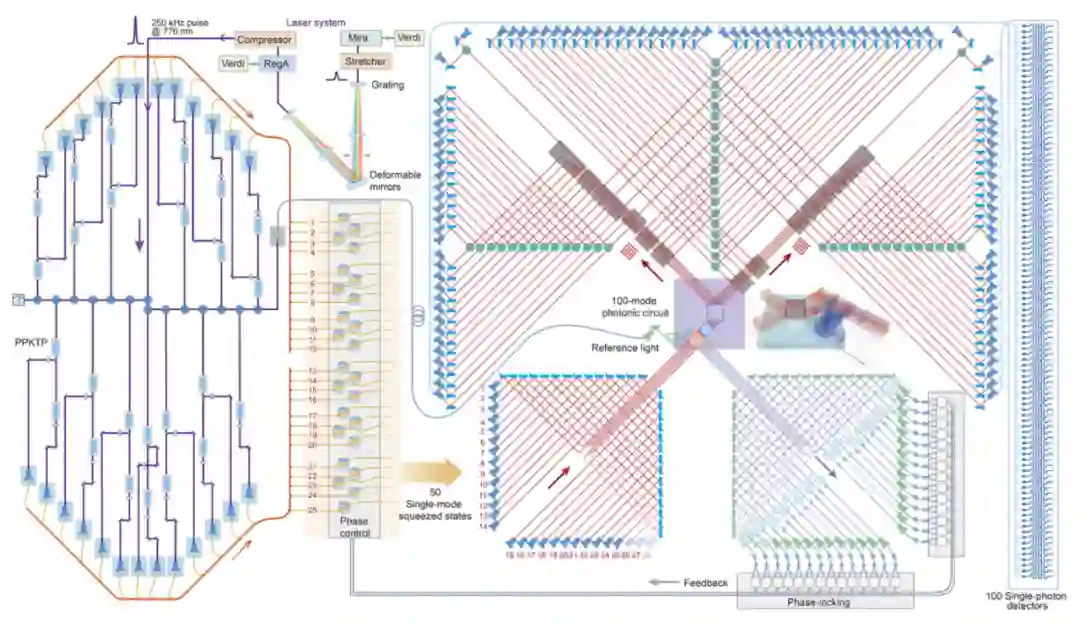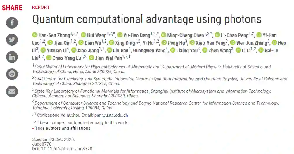 近日,中国科学技术大学潘建伟研究团队与中科院上海微系统所、国家并行计算机工程技术研究中心合作,成功构建了 76 个光子 100 个模式的高斯玻色取样量子计算原型机「九章」,其处理特定问题的速度比目前最快的超级计算机「富岳」快了一百万亿倍,同时也等效地比谷歌去年发布的 53 比特量子计算原型机「Sycamore」快一百亿倍。
