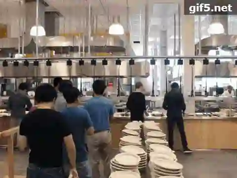 工作之余也可以忙里偷闲在办公室溜达一下。到了下午五六点钟一般就可以去“觅食”了,吃完晚餐可以留下加会儿班,也可以回去休息。