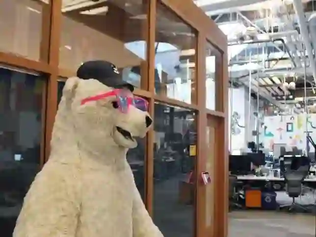 这只大熊名叫“Needy”,是产品增长团队的吉祥物。“这是我们一位工程师设计的。随着团队规模扩大,Needy也成了气氛调节者。他穿加大码T恤,熊高马大,跟大家合影很有存在感。”