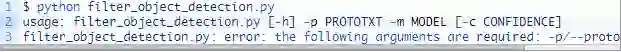 如果你看到这个信息,那说明你没有向程序传递「命令行参数」。如果他们不熟悉 Python、argparse 以及命令行参数的话(https://www.pyimagesearch.com/2018/03/12/python-argparse-command-line-arguments/)。