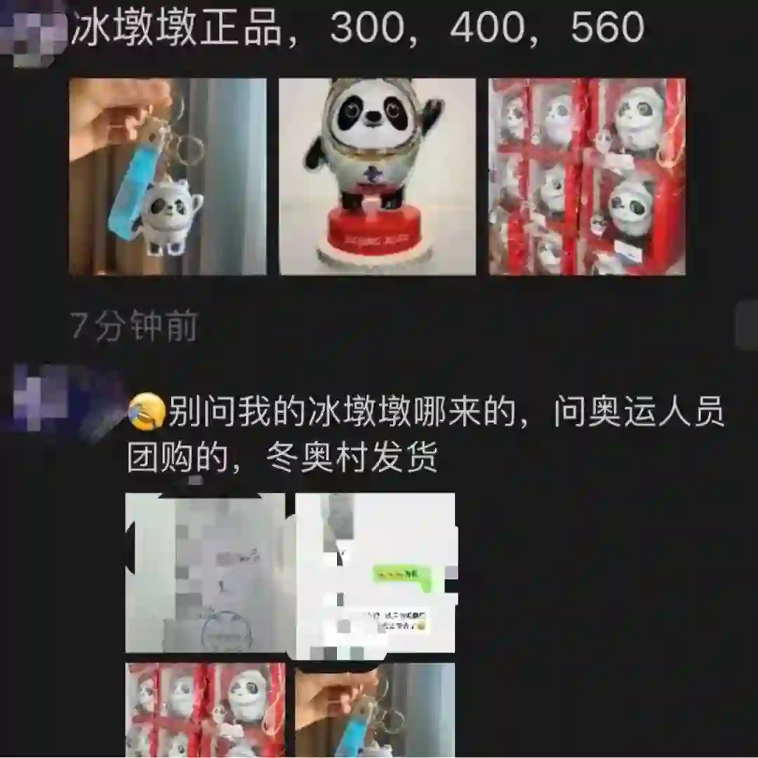 在部分微信群里,也开始有冰墩墩代购的出现。在李女士展示的群聊天截图中,一个官方售价58元的冰墩墩钥匙扣以88元顺丰到付的价格售卖,依然也有群友愿意为其买单。