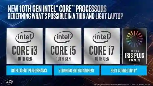 英特尔当然不甘人后,在会上宣布采用 10 纳米制程的第 10 代 Core 系列处理器开始出货,代号为 Ice Lake,这也是英特尔首个 10nm 工艺产品家族。顶级产品是搭载了 i7 芯片的处理器,具有四个内核,最高速度为4.1 GHz。英特尔官方表示,新芯片将比上一代芯片快18%。