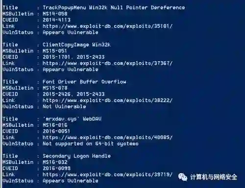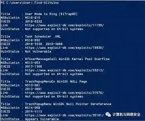 还有一个PowerShell脚本,目标识别的补丁会导致权限提升。此脚本称为Sherlock,它将检查下列系统: