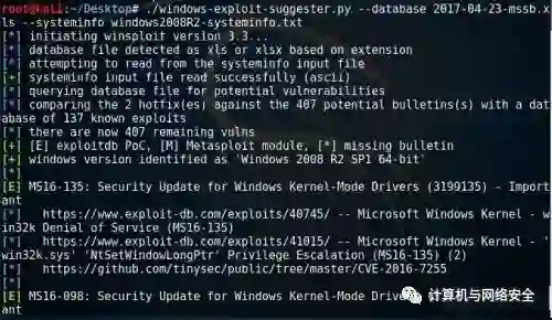 Gotham Digital Security 发布一个工具的名称为“ Windows Exploit Suggester”,开发者提议通过比对微软的漏洞数据库系统的补丁级别,可以用来识别那些可能导致权限提升漏洞。
