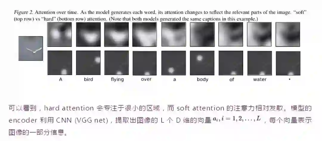 文章提出了两种 attention 模式,即 hard attention 和 soft attention,来感受一下这两种 attention。