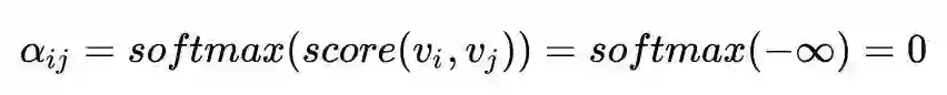 那怎么将这一点体现在 attention 的计算中呢?文中说只需要令 score(vi,vj)=-∞ 即可。为何?因为这样的话: