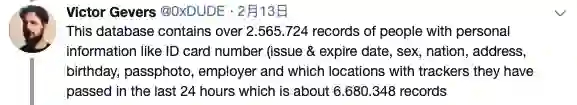 他表示,现在数据库已通过防火墙“受到保护”。虽然他仍怀疑中国外的流量访问得到了阻止,但至少海外(服务器)是无法再访问到这些数据了。