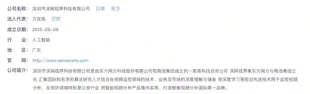 据公开信息,深网视界是一家由东方网力和商汤科技联合成立的,专注安防领域视频分析的公司。于 2015 年 9 月在深圳成立,公司经营范围包括技术开发、技术转让、技术咨询、技术服务、技术推广等。2017 年 5 月,商汤科技出资认购深网视界 2000 万人民币,持股 35.83%,成为第二大股东。
