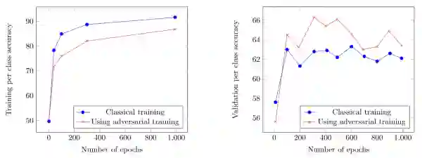 另外从训练过程中的性能上也可以看出,使用对抗训练,降低了过度拟合。