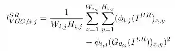 第一部分是基于内容的代价函数,第二部分是基于对抗学习的代价函数。基于内容的代价函数除了上述像素空间的最小均方差以外,又包含了一个基于特征空间的最小均方差,该特征是利用VGG网络提取的图像高层次特征: