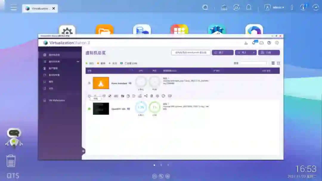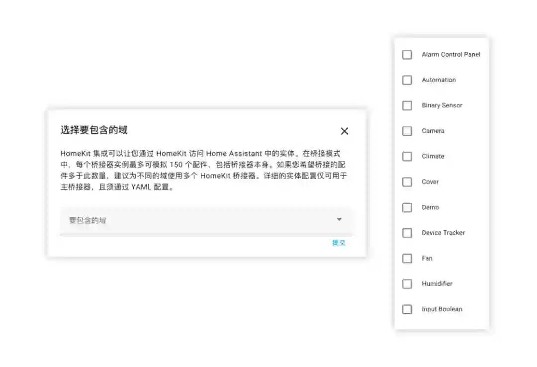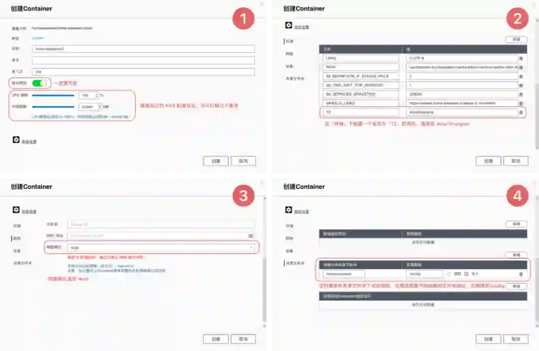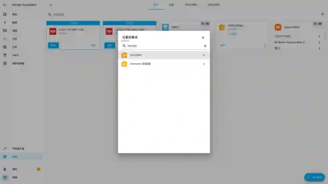 https://github.com/home-assistant/operating-system/releases/download/7.0.rc1/haos_rpi3-64-7.0.rc1.img.xz注意刷写的目标磁盘不要选错刷写完成后,将树莓派接上电源和网线,启动完成后在电脑的浏览器中输入 homeassistant.local:8123,即可进入到 Home Assistant 后台管理界面。对于方案二,操作就更加简单了。由于我目前使用的是 NAS 品牌是威联通 NAS,因此后面也将用它来举例,其他品牌的 NAS 可以自行查找对应的资料。首先是通过 Docker 来安装的方式。登陆到 NAS 后台后,在存储池的任意一个位置新建 homeassistant 共享文件夹,用于存储 Home Assistant 所产生的配置文件。例如我是直接建立在存储池的根目录下接着,打开 Container Station,然后点击左侧的创建,搜索 Home Assistant,选择「Docker Hub」下的第一个搜索结果,点击安装。然后,选择最新版本的映像,并按照下面的参数来进行设定。设定完成后,点击确认安装,并等待安装完成。完成后,在电脑浏览器中输入你的 NAS IP 地址:8123,就可以登陆到 Home Assistant 后台管理页面。而通过虚拟机来安装,则需要先下载 Home Assistant 的虚拟机镜像。首先到这里下载最新的 vmdk 虚拟机文件,然后解压后上传到 NAS 任意一个文件夹中。由于 NAS 中的虚拟机文件为 img 格式,因此在运行之前,我们需要进行一步转换操作。打开 Virtualization Station,然后点击「导入 - 映像转换器」,选择你上传的 vmdk 文件和转换后的保存位置,点击确定并等待一段时间即可。完成之后,我们就可以开始建立虚拟机了。同样是在 Virtualization Station 中,点击「建立」,然后按照下面的图片来进行设置。需要注意的是,启动固件一定要选择 UEFI,否则必然出错。这样我们就成功创建了一个 Home Assistant 虚拟机。在虚拟接列表中点击开始,然后打开远程桌面,等到界面中显示了 ha > 即表示启动完成。回到虚拟机列表后,就可以找到 Home Assistant 的 IP 地址,在浏览器中输入这个 IP 地址,然后加上 :8123 ,就能进入到 Home Assistant 后台管理界面了。不过,通过虚拟机安装的 Home Assistant 首次启动需要等待大概 20 分钟或更长需要注意的是,通过 Docker 方案安装的 HomeAssistant 是没有 Supervisor 的(你可以理解为官方提供的一个插件库)。如果你只是为了和我一样只是单纯地想将米家的设备接入到 HomeKit,不打算使用 HomeAssistant 的其它功能,那么可以采用这个方案。否则,我强烈建议使用树莓派来刷写 HomeAssistant 的官方系统,或是用虚拟机来安装。无论是何种方案,耗费的时长都不一定相同,且首次启动 Home Assistant 也需要较长时间。在这之中影响的因素包括机器性能、硬盘速度和网络环境。如果某一步卡住了,可以耐心等待一段时间,或是试试万能的重启 / 重头再来操作。现在,我们安装好了 Home Assistant,其实就已经完成了最难的一步,接下来的操作,就非常简单了。