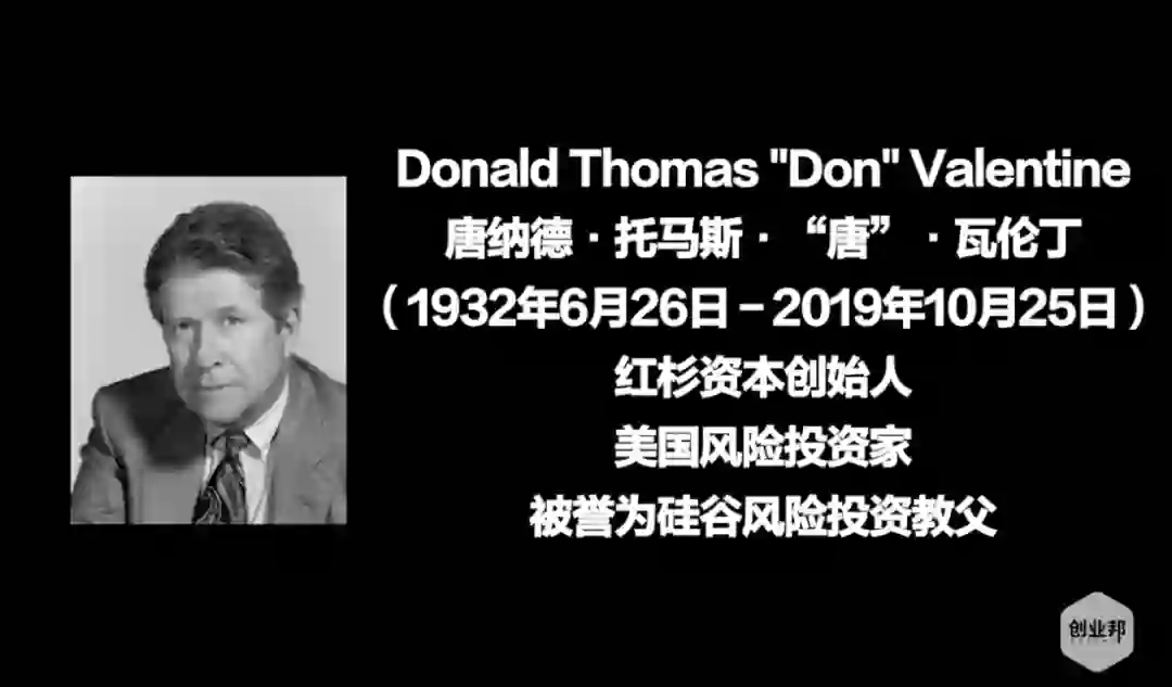 唐·瓦伦丁(Don Valentine,1932-2019),红杉资本创始人、铸就硅谷传奇的领袖之一,投出了苹果、EA、甲骨文和思科。他个性鲜明,有提携VC后辈的美名,是美国VC业当之无愧的教父之一。