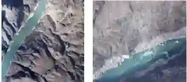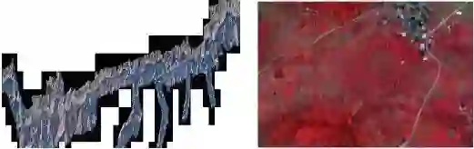 图7 金沙江峡谷影像以及高光谱航测影像(“863”专项成果)