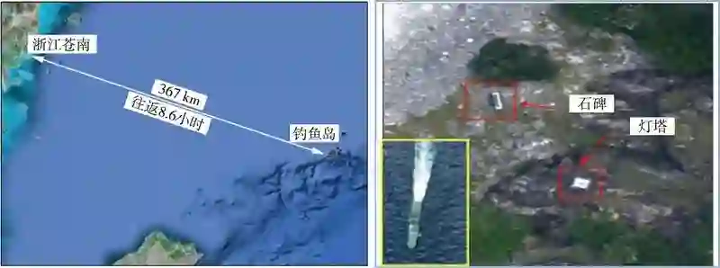 2012年4月27日-5月27日,中国搭载双频GPS飞控,获得了钓鱼岛及其附属岛屿全覆盖的0.1m分辨率遥感数据,通过稀少无控制测图技术,完成了1:2000大比例尺地形图测图,填补了钓鱼岛及其附属岛屿缺少大比例尺地形图的历史空白。成果供14个国家部委使用。进一步地,2014年7月28日遥感观测无人机从浙江省苍南县霞关镇起飞和回收,实际飞行870 km航程,持续飞行9h,成功获取了钓鱼岛主岛和南北小岛(总面积约km²范围)0.05m高分辨率遥感影像和POS数据(图8),为开展遥感无控制测图技术及对岛上人工地物的识别和定位技术研究奠定基础。